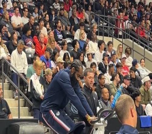 非常认真!比赛期间哈登在场边进行完整的单车训练