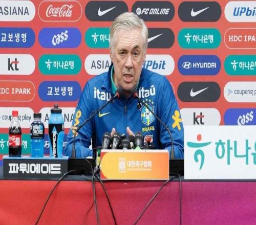 友谊赛对阵韩国赛前,巴西国家队主帅安切洛蒂出席了新闻发布会。谈比赛“明天的比赛将由本托首发,接下来的一场将由乌戈-索萨担任门将。”“明天将是球队提升质量、改善态度、